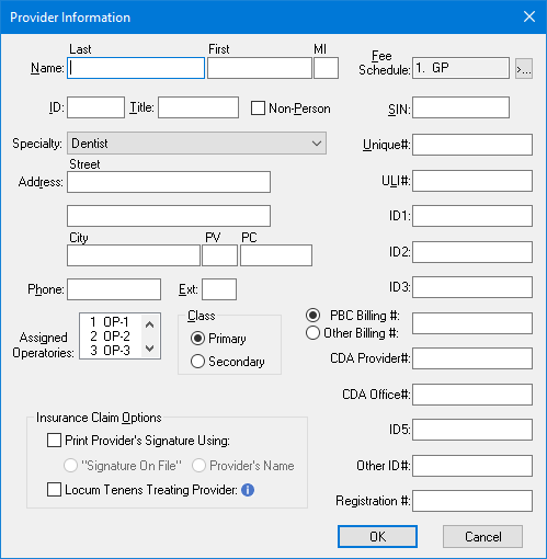 CDA Provider# - Type the provider's Canadian Dental Association provider number.