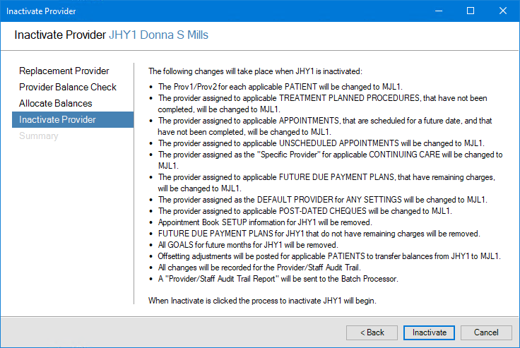 Important: We strongly recommend that you back up the Dentrix database prior to inactivating a provider.