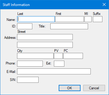 Address – Type the staff member's home mailing address (Street, City, Province, Postal Code).