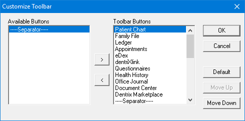 You can customize the Dentrix toolbars to show only the buttons that you use most frequently.