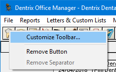 To customize the Dentrix toolbars