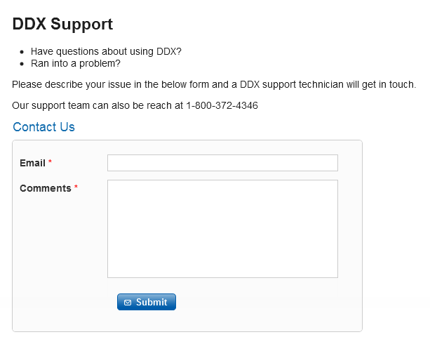 You can submit a request for a DDX support technician to contact you. If you want immediate assistance, call 1-800-372-4346.
