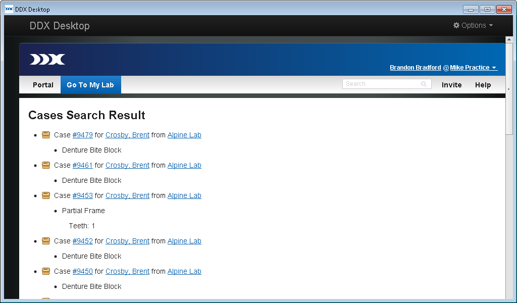 Note: You must first log in to the DDX Desktop to view lab cases.
