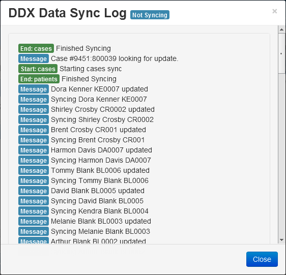 The DDX Data Sync Log dialog box appears.