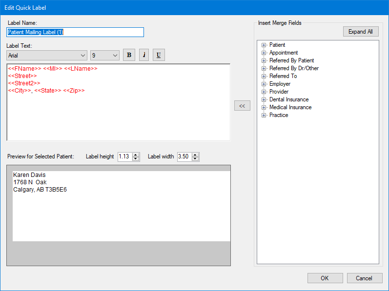 The Edit Quick Label dialog box appears.