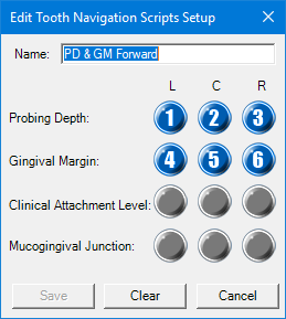 The following eight tooth navigation scripts are available in the Perio Chart: