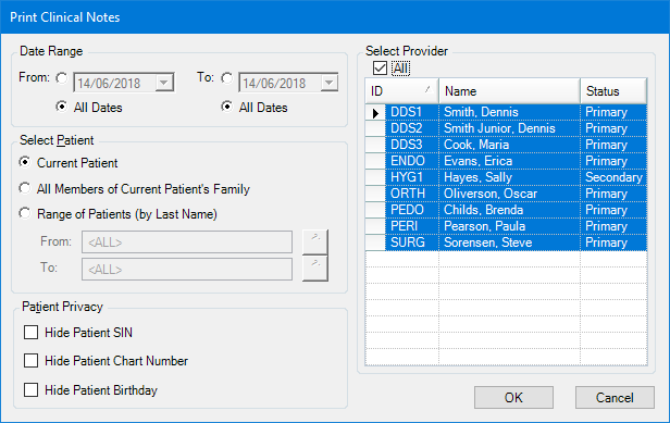 To print the clinical notes for a single provider, select the same provider for the From and To fields.