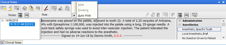 You can reposition, hide, auto-hide, or dock the Clinical Notes panel to suit the preferences of each user.