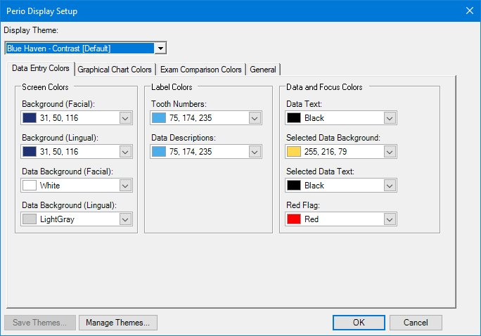 Dentrix provides you with 10 predefined display themes. You can also create custom display themes.