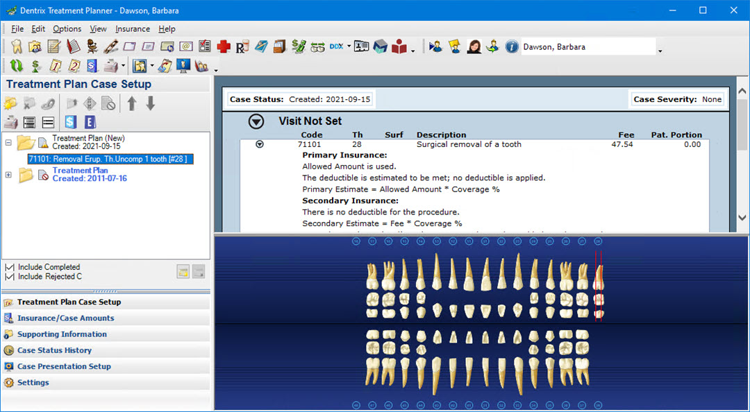 The Treatment Planner provides patients with easy-to-understand treatment options. When used in conjunction with the Dentrix Presenter, the Treatment Planner provides powerful case presentations.