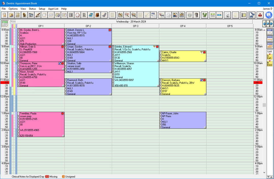 The Appointment Book is an electronic scheduler that helps you manage your patient appointments. You can schedule appointments, record broken appointments, print patient route slips, and even dial a patient's phone number directly from the computer.
