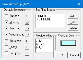 1. In the Appointment Book, click Setup, and then click Provider Setup.