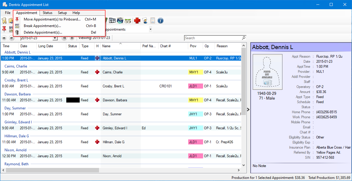 When patients call and cancel appointments, they are often forgotten and only rescheduled if patients take the initiative to call back. To prevent these broken appointments from being forgotten, they are moved to the Unscheduled List where you can review them regularly. The patient's Family File is updated with the date that the patient broke the appointment and the number of times the patient has broken appointments.