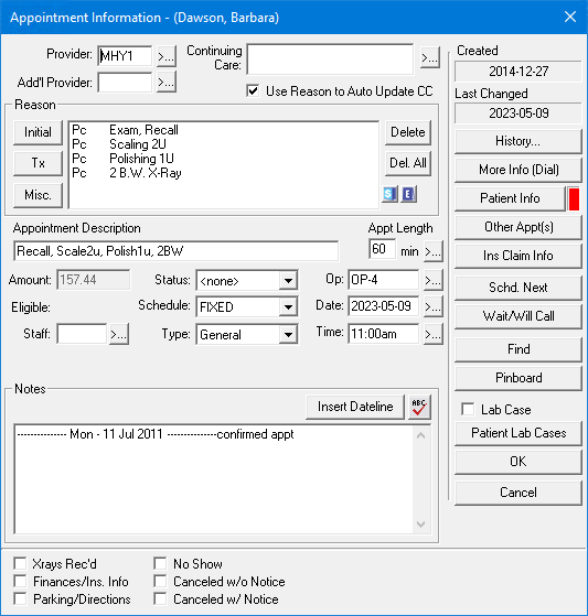 Tip: You can also click the Schedule Appointment button on the Appointment Book toolbar to edit appointment information.