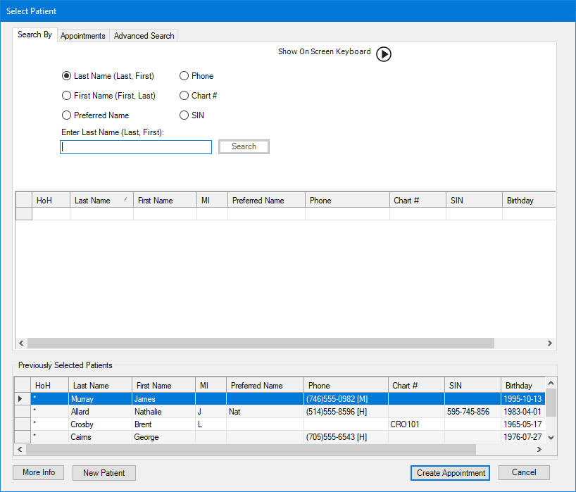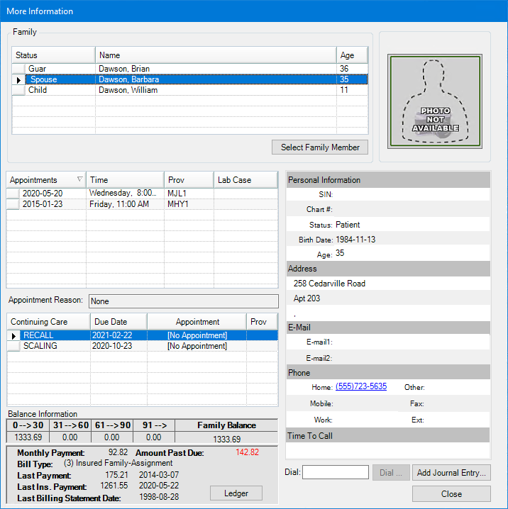 Note: You cannot edit appointment information from the More Information dialog box. To edit appointment information, you must first locate the appointment from the Appointment Book.