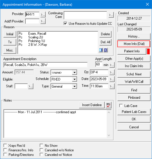 From the Appointment Book, you can dial a phone number automatically or view a patient's phone number.