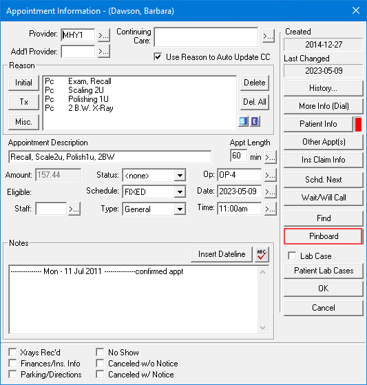 If you know the date and time that you want to reschedule an appointment, you can easily do so using the Pinboard without re-entering any appointment information.