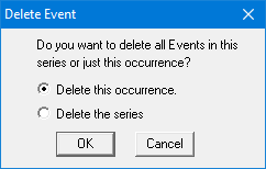 Note: If you specify multiple operatories and/or days for the event, Dentrix creates separate events (one per day per operatory) and displays them in the Appointment Book. The event creation process may take several minutes depending on the date range specified, days of the week selected, the number of operatories selected, and the number of future appointments scheduled. While Dentrix treats multiple operatories and/or days as separate events, they are linked. If you try to delete a linked event, you receive the following message.