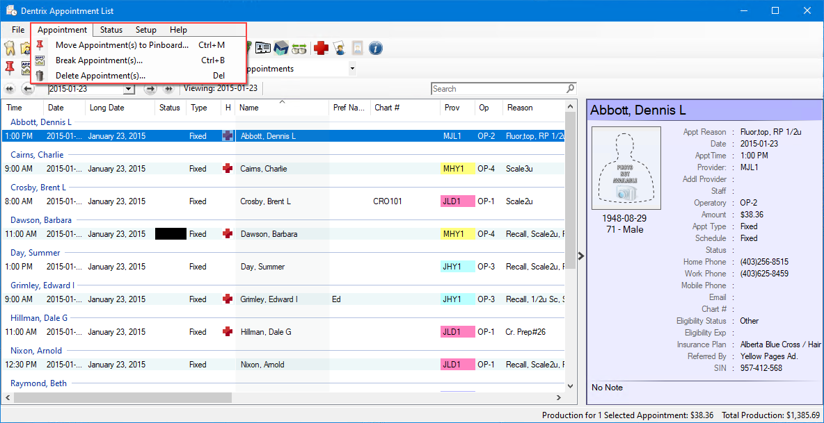 Note: Once you delete an appointment, an entry is made to the Dentrix Audit Trail indicating the date and time you deleted the appointment.