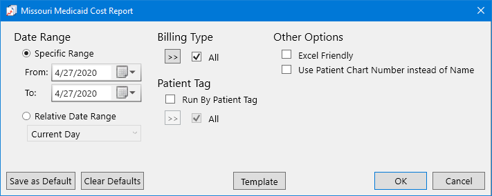 The Missouri Medicaid Cost Report dialog box appears.