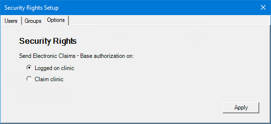 Claim clinic - A user can send claim electronically if that user has the "Send Electronic Claims" right for the clinic that the claim is associated with.