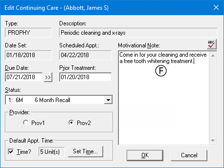 Continuing Care Notes - Motivational notes that have been added to the continuing care types that are assigned to the patient.