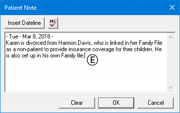 Guarantor Note - Account note for the patient's family record.
