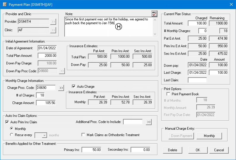 Payment Plan Notes - Notes that have been added to future due payment plans for the patient.