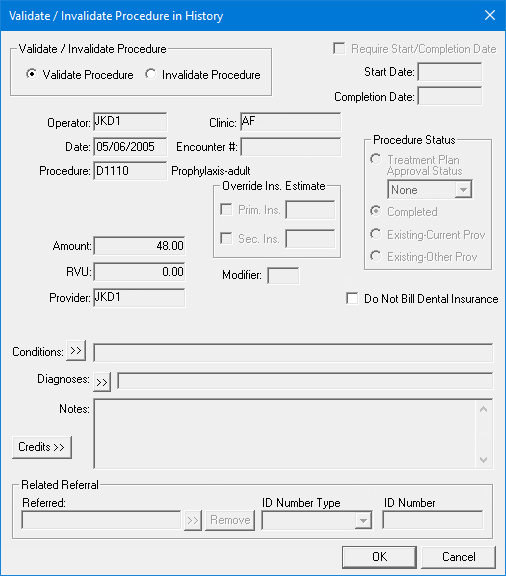 Dentrix Enterprise saves your office from repetitive data entry by posting completed procedures to both Ledger and Chart at the same time. However, a different standard regarding record keeping exists for each module. Ledger, as a financial record, uses generally accepted accounting principles (GAAP). In contrast, Chart is a clinical record of patient care. Then, what do you do when you discover a posting error for a procedure in a month that has been closed out? The procedure has been locked to prevent deletions and changes, which is good for a financial record, and you can simply enter an adjustment in Ledger to correct the problem. However, the clinical record needs to accurately represent the actual care given, but you can't delete or change the procedure or "adjust" the clinical record in Chart. To solve this discrepancy, Dentrix Enterprise allows you to invalidate a procedure in history (in closed out months). Invalidating a completed procedure removes it from Chart while leaving it in Ledger.