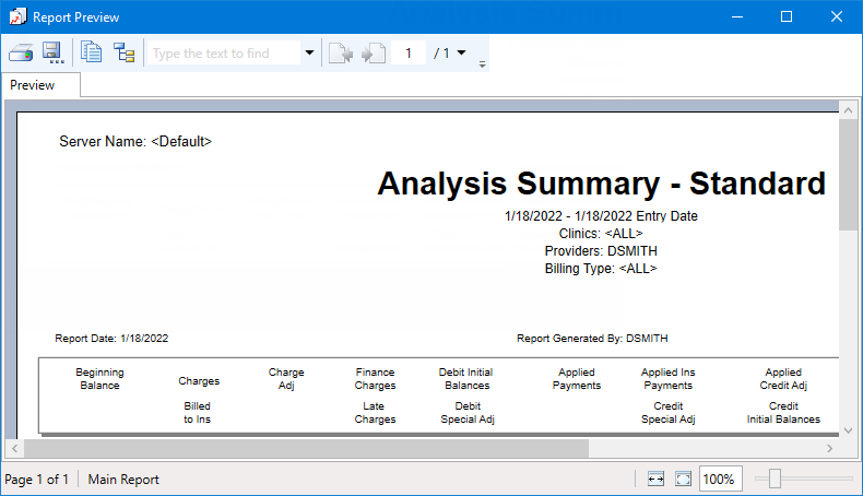 A generated report appears in the Report Preview window.