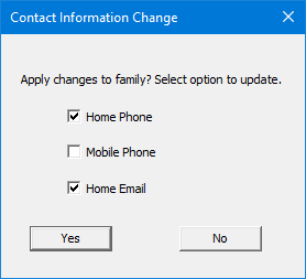 If you made changes to a patient's email address, home phone number, and/or mobile phone number, the Contact Information Change dialog box appears.