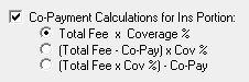 Co-Payment Calculations for Ins Portion - If the plan requires that specific co-pay amounts be paid by the patient for each procedure, select this checkbox; otherwise, clear this check box.