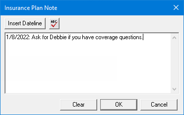 Note: Insurance plan notes are available in any patient record that has this insurance plan attached to it. Also, insurance plan notes will appear in an insurance claim window but not on the corresponding claim. So, you can update the notes from a coverage table or a claim window as needed from any patient records with the same insurance plan.