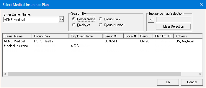 The Select Medical Insurance Plan dialog box appears.