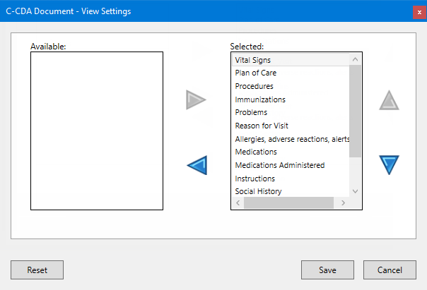 Note: The specified view settings are saved for all C-CDA documents that you view from now on.