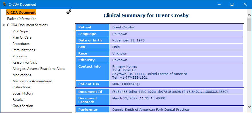 To learn where that clinical information comes from in Dentrix Enterprise, refer to the Populating C-CDA files topic.