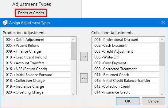 Debits vs Credits - To assign each adjustment type as either a production or collection adjustment, do the following: