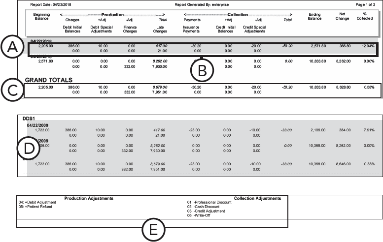 Net Change - The difference between the Beginning Balance and Ending Balance (or between Production and Collections).