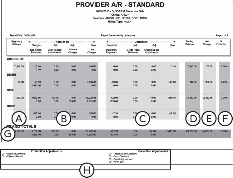 The Provider A/R Totals - Standard Report - Displays production totals for a given date range.