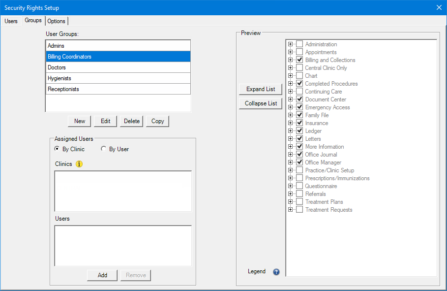 In the Security Rights Setup dialog box, select the Groups tab.