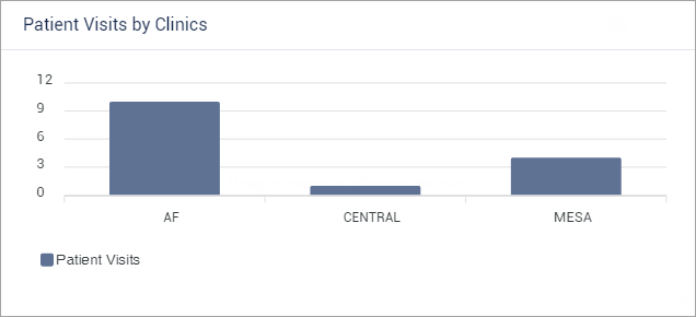 Patient Visits by Clinics – This summary tile displays the number of visits and of broken/missed appointments in each clinic.