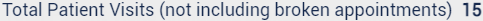 Note: The visit counts do not include broken appointments if the Include Broken Appt to Patient Visits checkbox is clear under Filters.