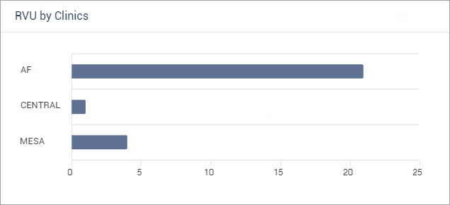 RVU by Clinics – This summary tile displays the RVU for completed procedures in each clinic.