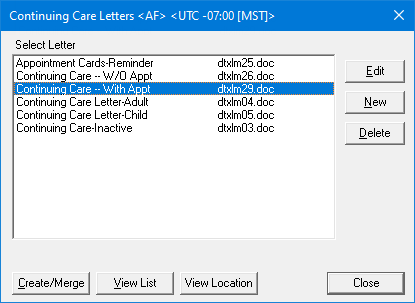 In the Select Letter list, select Continuing Care -- With Appt.