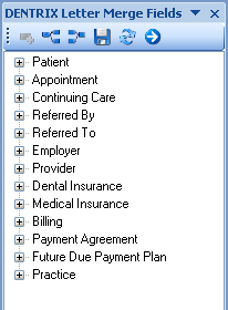 on the DENTRIX Letter Merge Fields