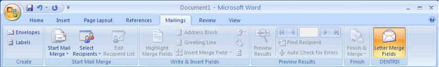 If you use Microsoft Word 2007® or 2010®, you can choose to install an add-in for these versions of Microsoft Word during the Dentrix Enterprise installation process. With this add-in you can create custom document templates in Microsoft Word that can be merged from Dentrix Enterprise..