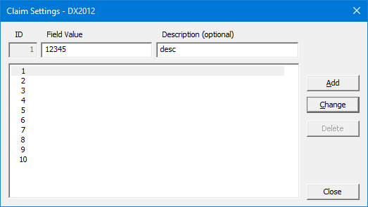 Note: This button is available only if the selected Claim Format is DX2012 or DX2019.