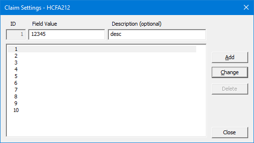 Claim Format - The format of the claims that get submitted to the payor. By default, HCFA is selected, but you can select a different claim format.