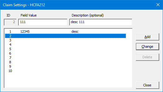 Advanced - Information that can appear on printed insurance claims. To add, edit, or delete advanced claim settings, do the following:
