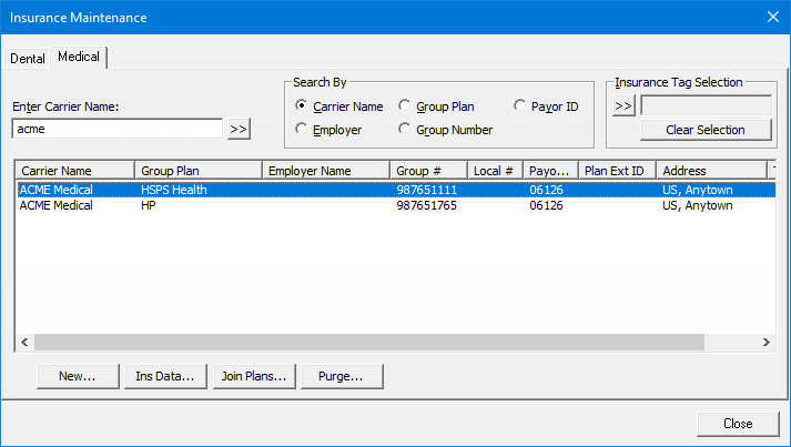 In the Insurance Maintenance dialog box, select the Medical tab.
